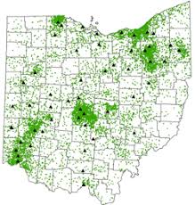 dot-distribution maps display quantitative data as a dot,representing a number of the factors found within an area. The dot distribution pattern reflects the general locations where the factor was most likely to occur. The pattern and number of dots within the area reveal the density of the phenomenon. Two types of dot-distribution maps are: first the traditional dot map showing the distribution of a phenomenon, traditional dot map symbolizes data with blue dots, second type is an increase/decrease dot map showing increasing (positive) and decreasing (negative) data values as they related to the last agricultural census. The increase/decrease dot map symbolizes data using blue dots for positive data values and red dots for negative data values.